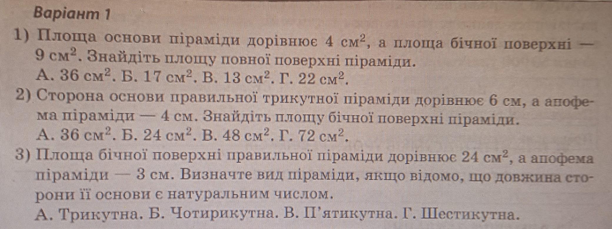 Sповн = Sосн + Sбічн = 9+4 = 13 см²
