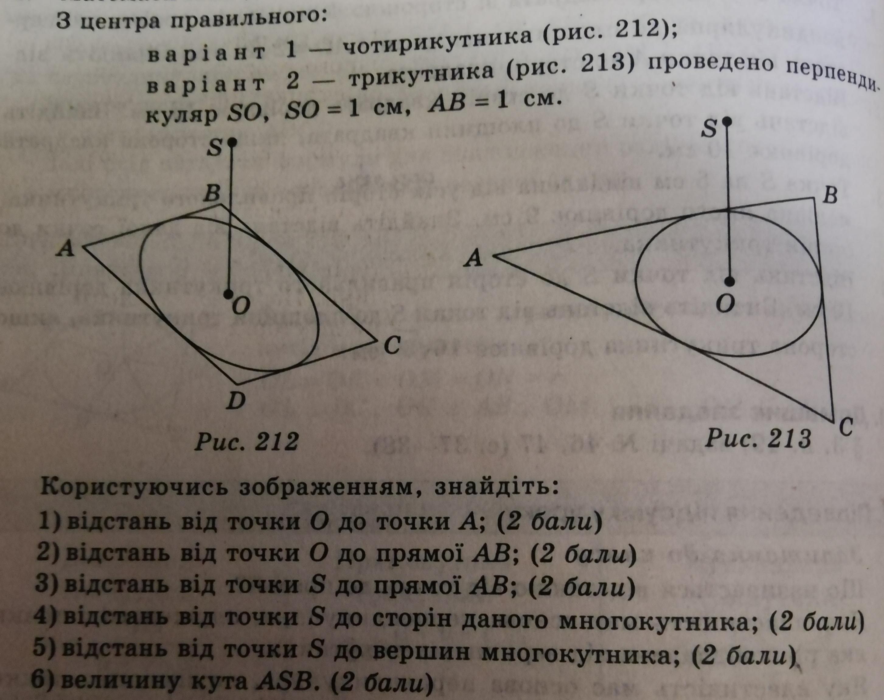 5. Відстань від точки S до вершин многокутника: