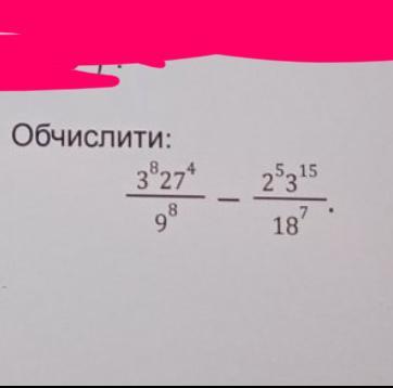 (3⁸ * (3³)⁴)/(3²)⁸ - (2⁵ * 3¹⁵)/(2⁷ * (3²)⁷) =