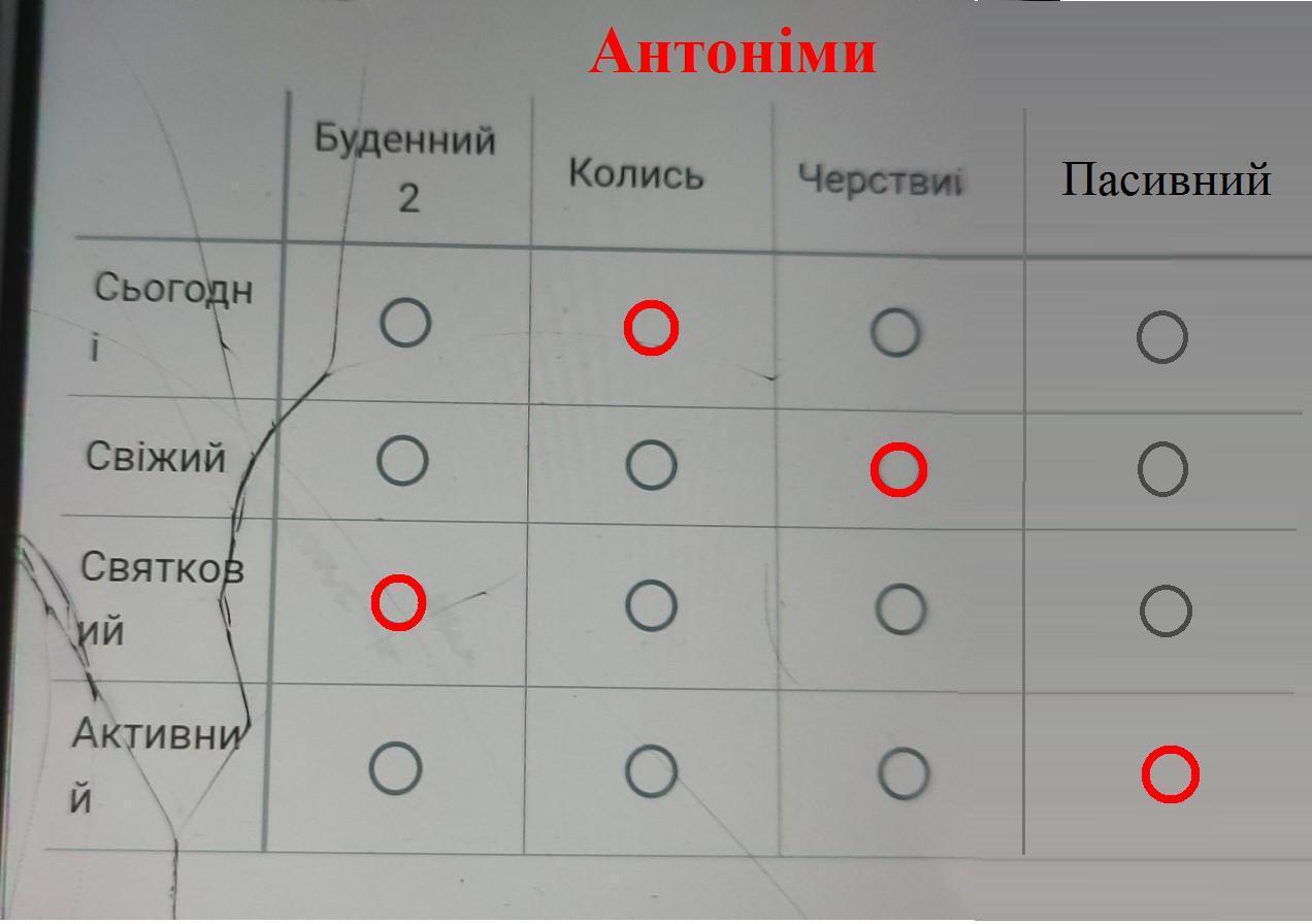 (антоніми: сьогодні вказує на теперішній час, колись — на минулий час).
