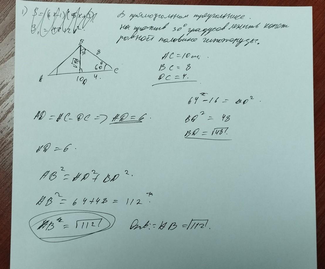 вот это решение задачи отв AB=√112