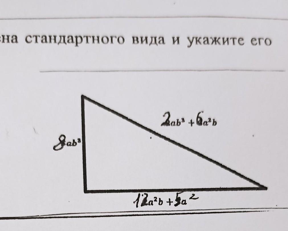 2. Найдите периметр фигуры. Ответ запишите в виде многочлена стандартного Степень. 2=8авз b=2083+62b c=12a2b+502 Haume: P-? Pemerne. P=a+b+c . дева