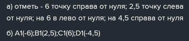 а) На координатной прямой отметьте точки A(6), B(-2,5), C(-б), D(4,5). б) Укажите точки с противоположными координатами.