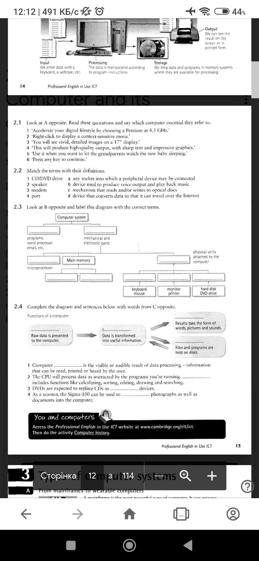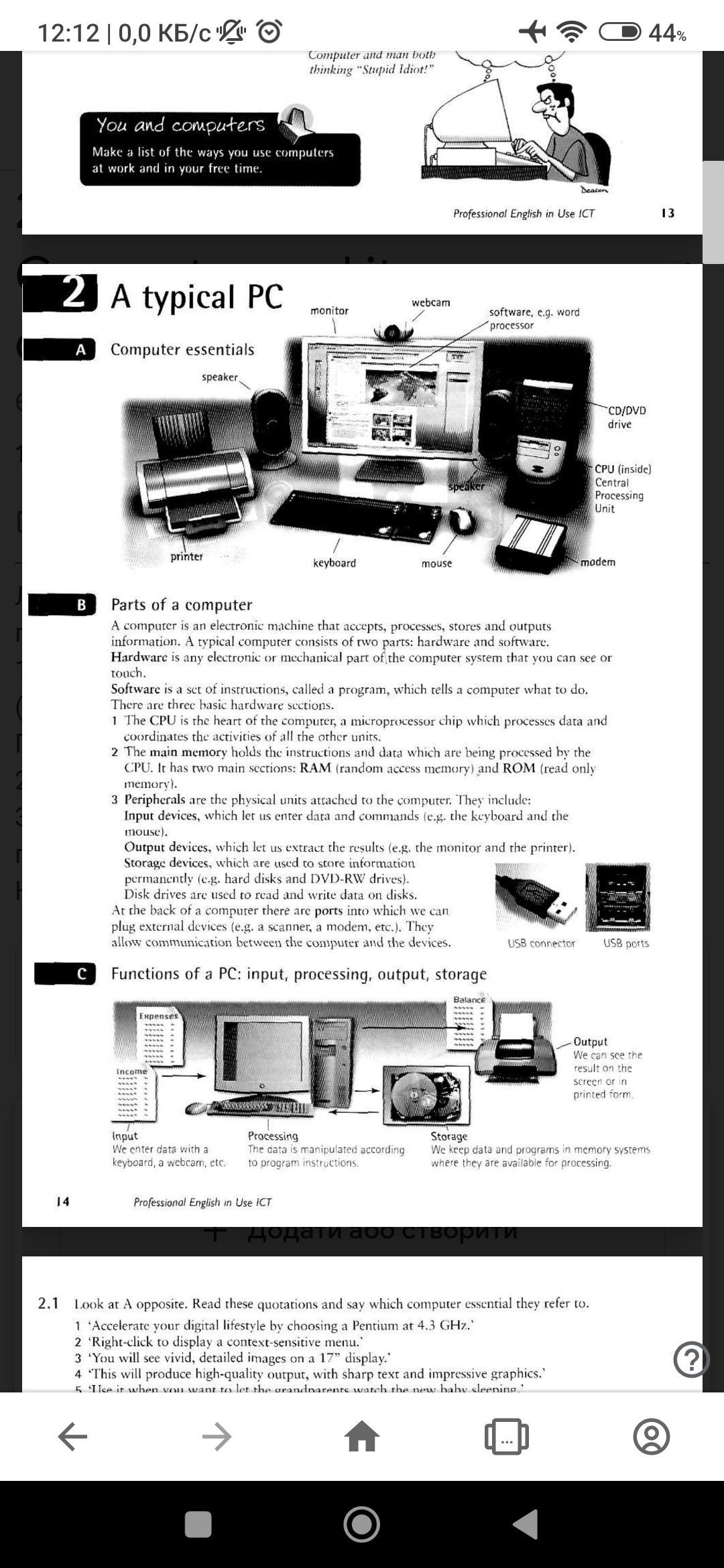 1. с. 14 завдання B та С - переписати повністю в зошит (визначення компютера та його складових, функцію ПК).