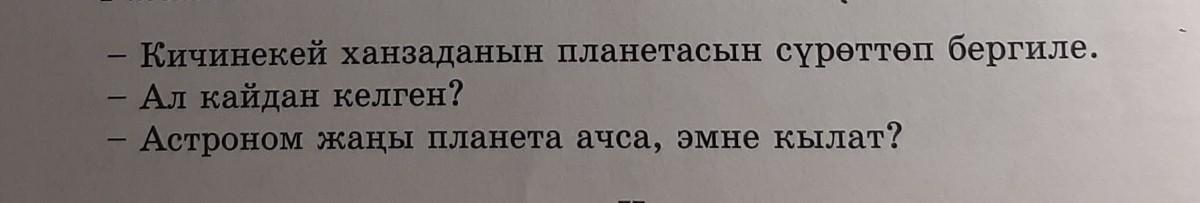 ПОЖАЛУЙСТА СРОЧНО 1-тыным Кичинекей ханзаданын планетасын сүрөттөп бергиле.