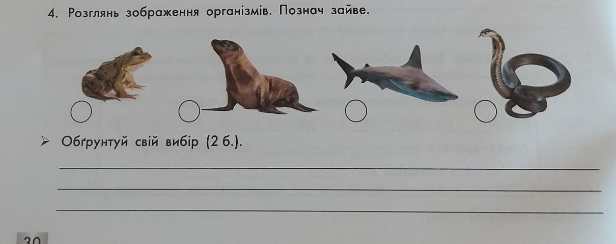 Ответ:У лягушки, змеи, акулы и тюленя есть несколько общих черт, хотя они принадлежат к разным классам животных и имеют разные характеристики: