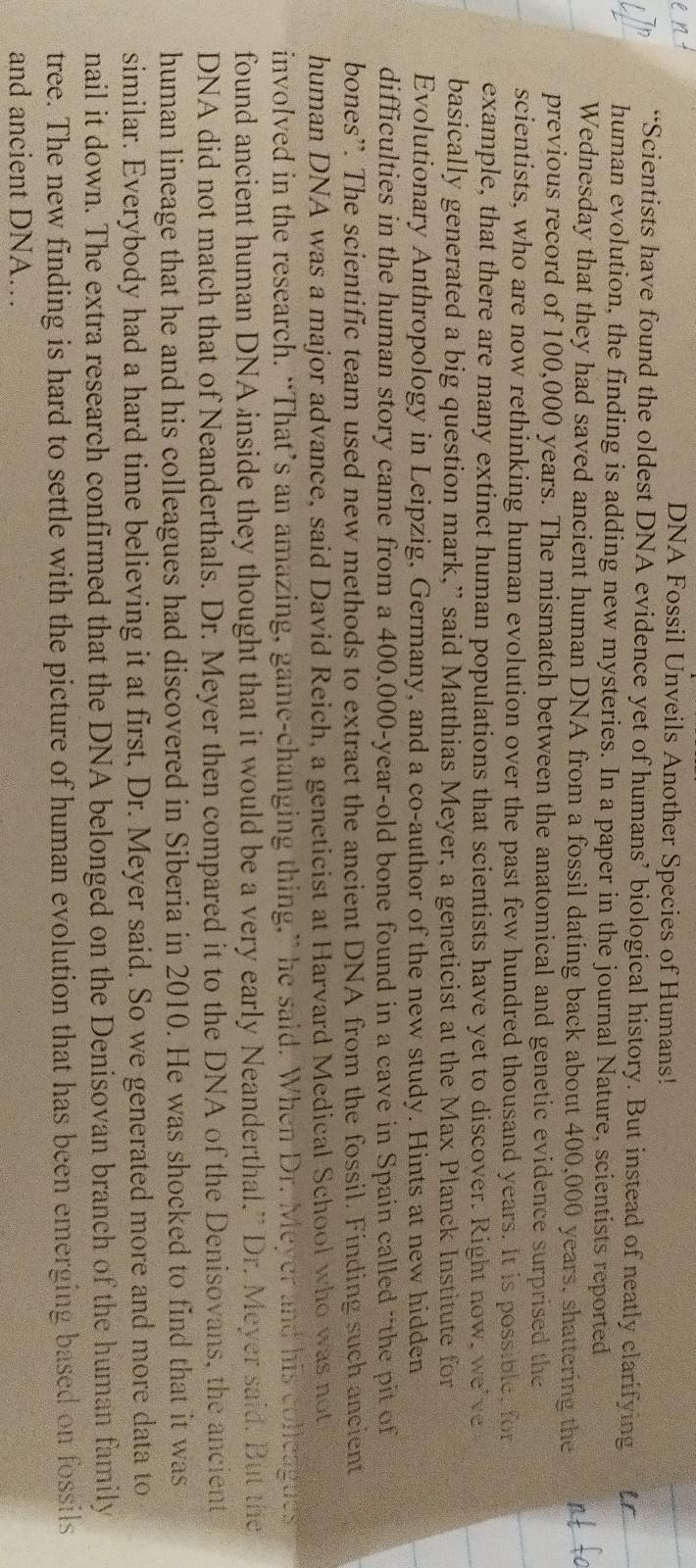 6.Dr.Meyer and his_____found ancient human DNA.........
