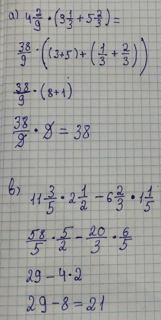 4 2/9 * (а + в) = 4 2/9 * (3 1/3 + 5 2/3) =