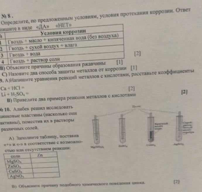 1. Гвоздь + масло кипяченная вода (без воздуха) - НЕТ (коррозия не протекает в отсутствие воздуха).