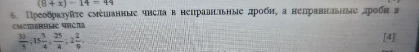 6. Преобразуйте смешанные числа в неправильные дроби, а неправильные дроби в смешанные числа 3 25 33 15. [4]