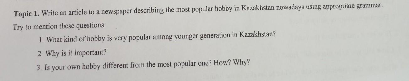 Now let's move on to the second question. Although studying and preserving cultural heritage is the most popular hobby, my hobby is different from it in some aspects. Instead of focusing solely on national culture, my hobby is aimed at studying and connecting various cultural traditions, including Kazakhstan. I believe that the merging of different cultures can lead to enrichment and exchange of experiences, which in turn will lead to greater understanding and cooperation between peoples.