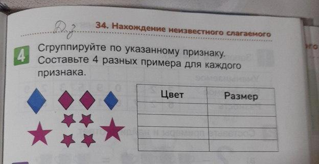 Сгруппируйтесь по указанному признаку составьте 4 разных примера для каждого признака