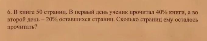 6. В книге 50 страниц. В первый день ученик прочитал 40% книги, а во второй день -20% оставшихся страниц. Сколько страниц ему осталось прочитать? РЕШИТЕ ПРОПОРЦИИМИ!!!! ЭТО ВАЖНО!!