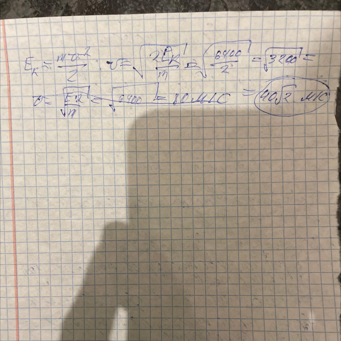 Если кинетическая энергия вещи массой 2 килограмм 32 кДжоуля, то какая у него была скорость?