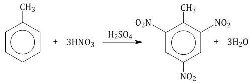 [2] 2. а) Гомологи бензола легче вступают в реакции замещения, вследствие взаимного влияния атомов в бензольном кольце реакция нитрования проходит иначе. Напишите реакцию нитрования толуола в структурном виде, подпишите реагенты и продукты реакции. б)Где применяется полученный продукт?