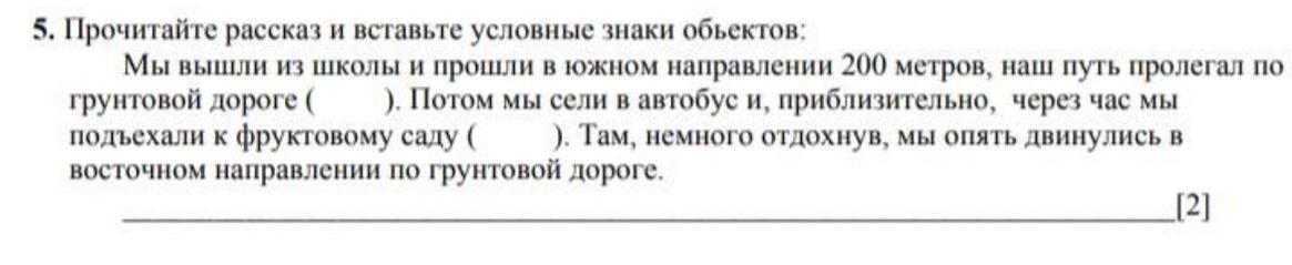 1.Мы вышли из школы и прошли в южном направлении 200 метров, наш путь пролегал по грунтовой дороге 1.200 метров