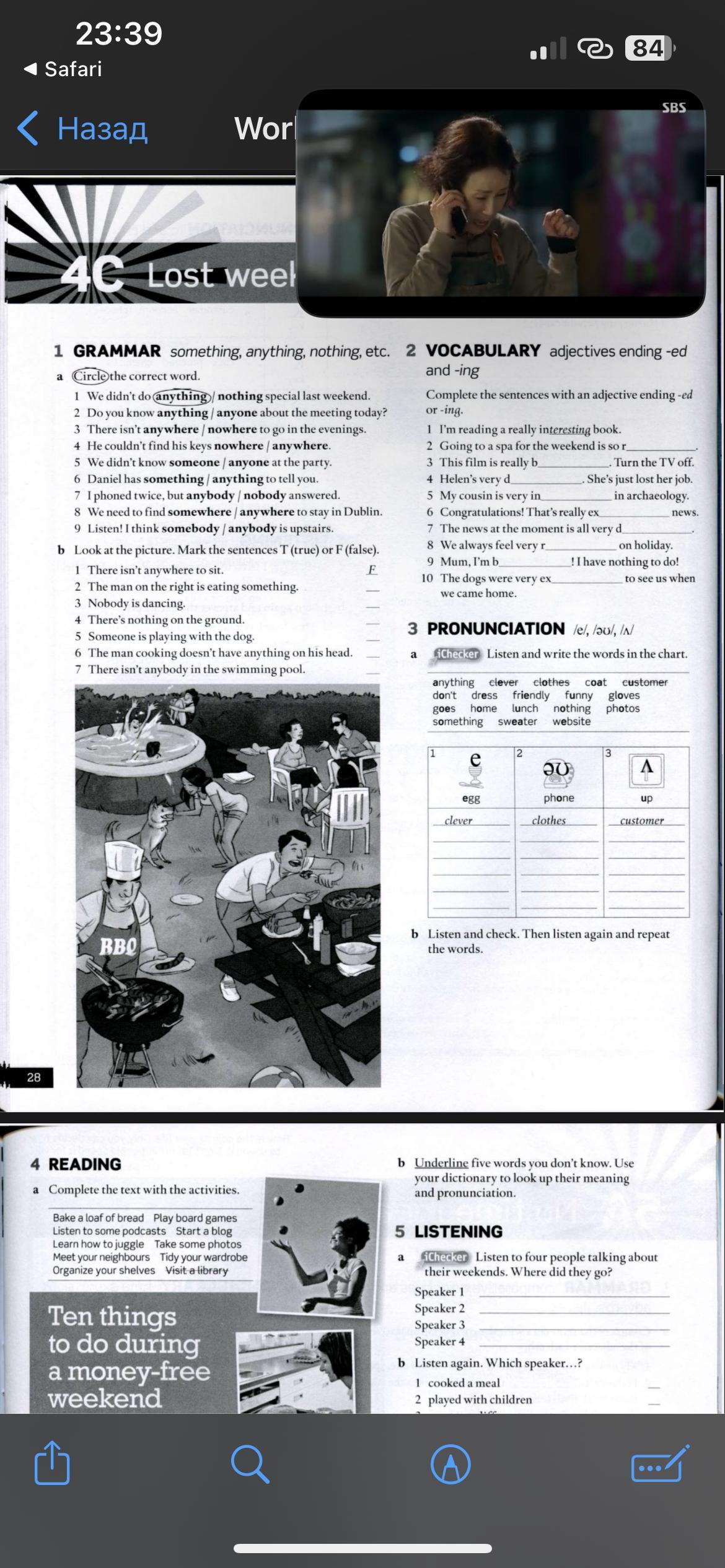Lost weel 1 GRAMMAR something, anything, nothing, etc. b Look at the picture. Mark the sentences T (true) or F (false). 1.B нужен