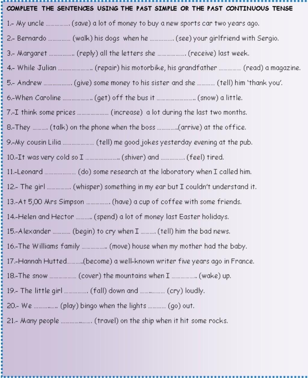 4.- While Julian was repairing his motorbike, his grandfather gave some money to his sister and she was reading a magazine.
