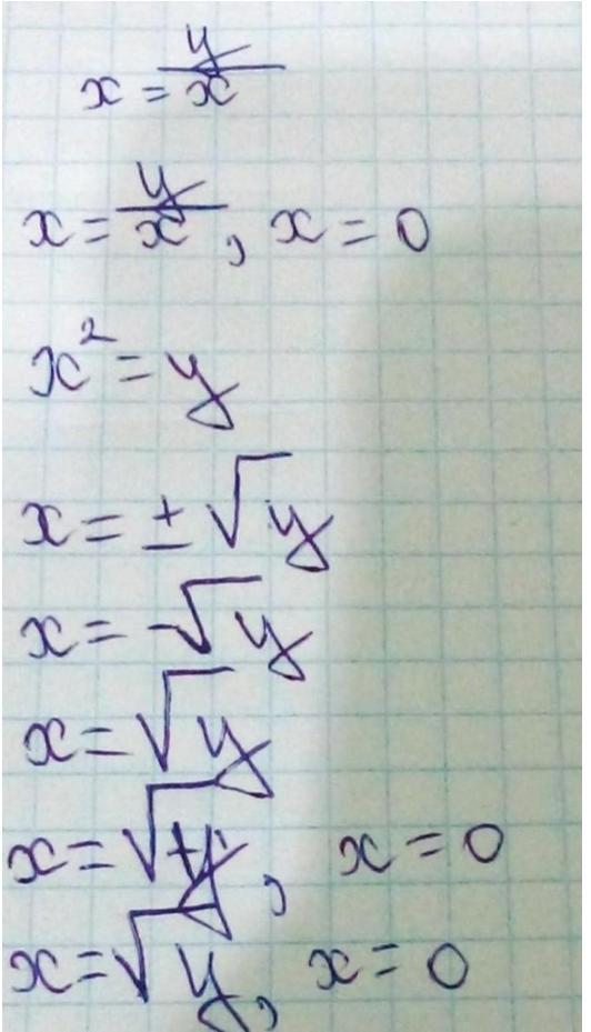 Геометричне місце точок, які задовольняють умові х = у / х, буде виглядати як гіпербола. Рівняння гіперболи х = у / х можна переписати як x² = у або у = x².