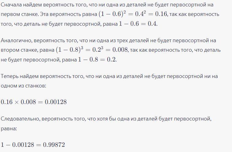 вероятность равна 0,8. На 1-м станке изготовлены две детали, а на 2-м - три. Найти