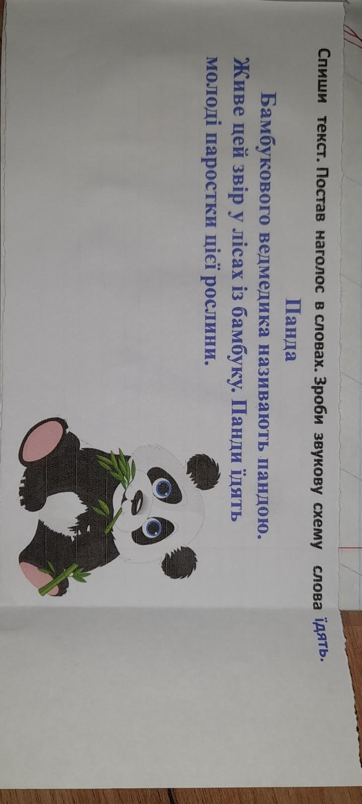 БамбУкового ведмЕдика називАють пАндою. ЖивЕ цей звір у лісАх із бамбУку. пАнди їдЯть молодІ пАростки цієї рослИни