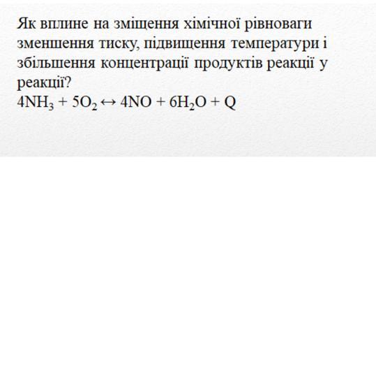 Як вплине на зміщення хімічної рівноваги зменшення тиску, підвищення температури і збільшення концентрації продуктів реакції у