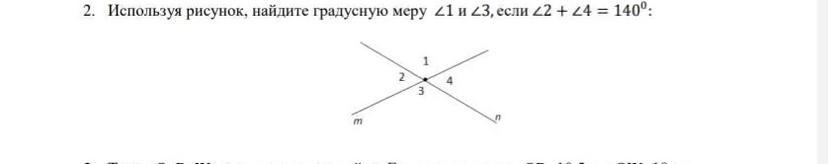 2. Используя рисунок, найдите градусную меру 21 и 23, если 22 + 24 = 140°