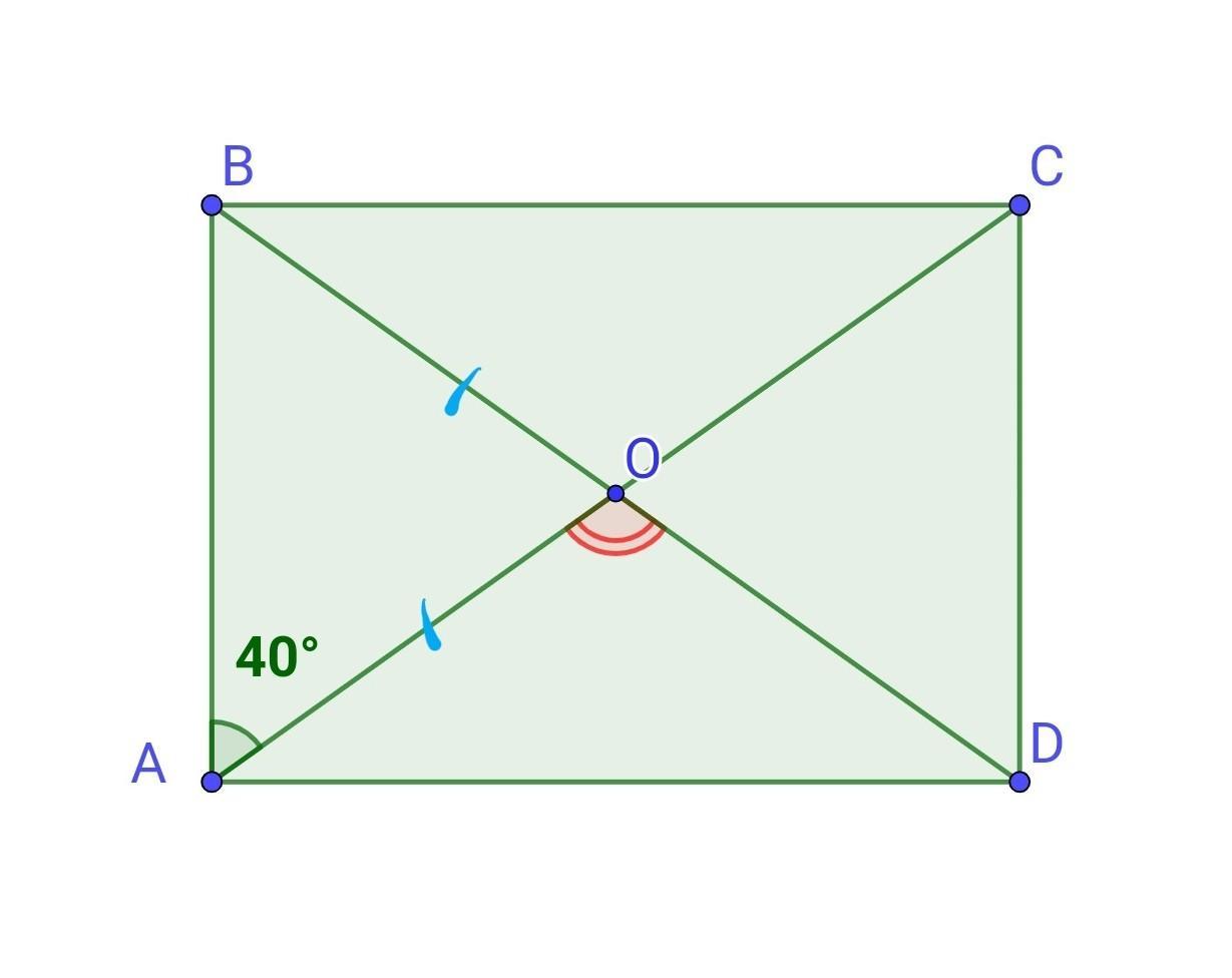 Дано: ABCD- прямоугольник, AC и BD - диагонали, AC∩BD=O, AB<AD, ∠BAO=40°.