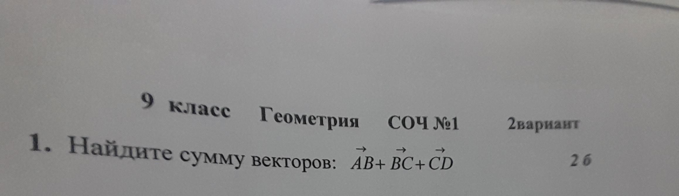 Чтобы сложить несколько векторов, нужно из произвольной точки отложить первый вектор АВ, из его конца отложить второй ВЕКТОР ВС, из конца второго вектора отложить ТРЕТИЙ CD; , соединить начальную точку с концом последнего вектора, получим сумму нескольких векторов =AD.