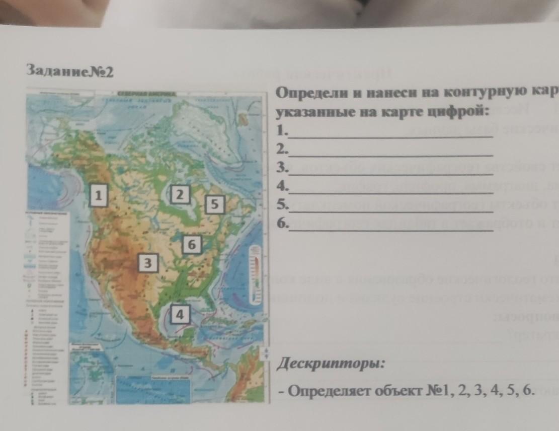 Задание 2. Определи и нанеси на контурную карту объекты, указанные на карте цифрой: 1. 2. 3. 4. 5. 6. Дескрипторы: - Определяет обьект №1, 2, 3, 4, 5, 6. 36