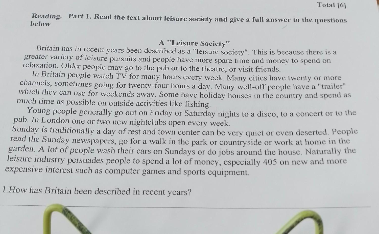 2. How often do people in Britain watch TV? 3. Where young people may go to spend their free time? 4. What do people do on Sunday in Great Britain?