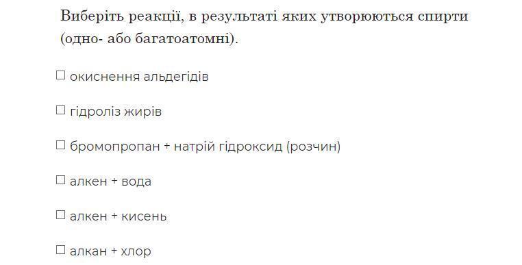 Виберіть реакції, в результаті яких утворюються спирти (одно- або багатоатомні).