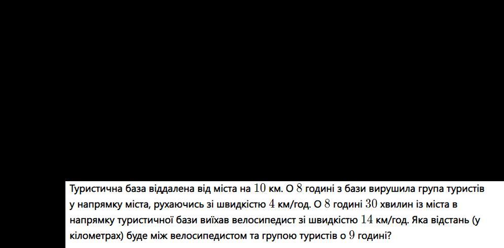 2) 10 - 2 = 8 (км) - відстань між туристами і велосипедистом, на момент коли він виїхав.