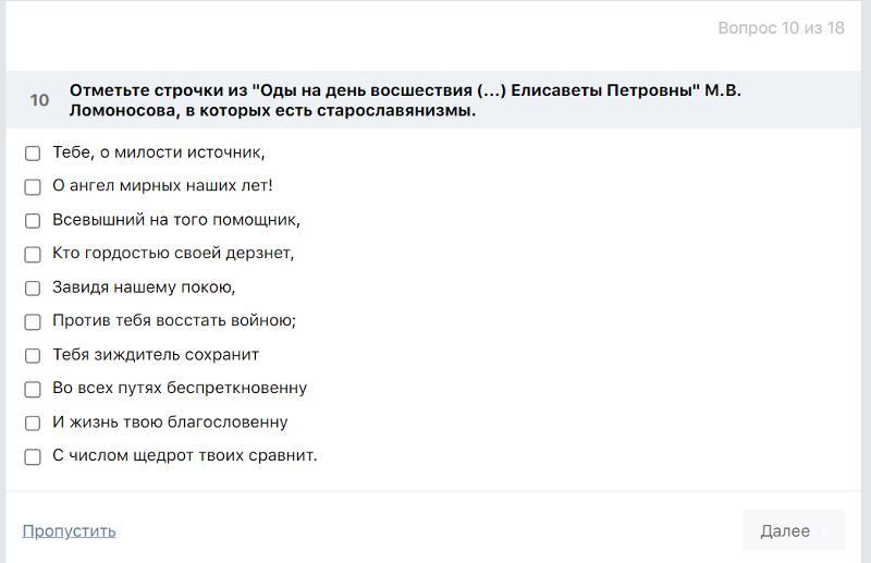 Отметьте строчки из "Оды на день восшествия (...) Елисаветы Петровны" М.В. Ломоносова, в которых есть старославянизмы.