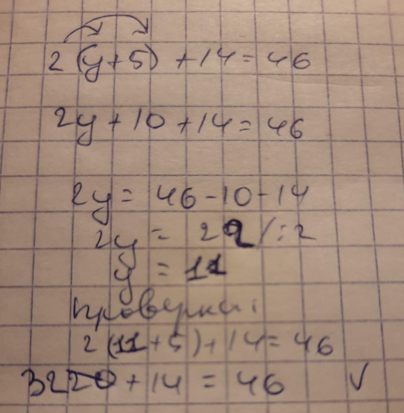 2(11 + 5) + 14 = 2 * 16 + 14 = 32 + 14 = 46