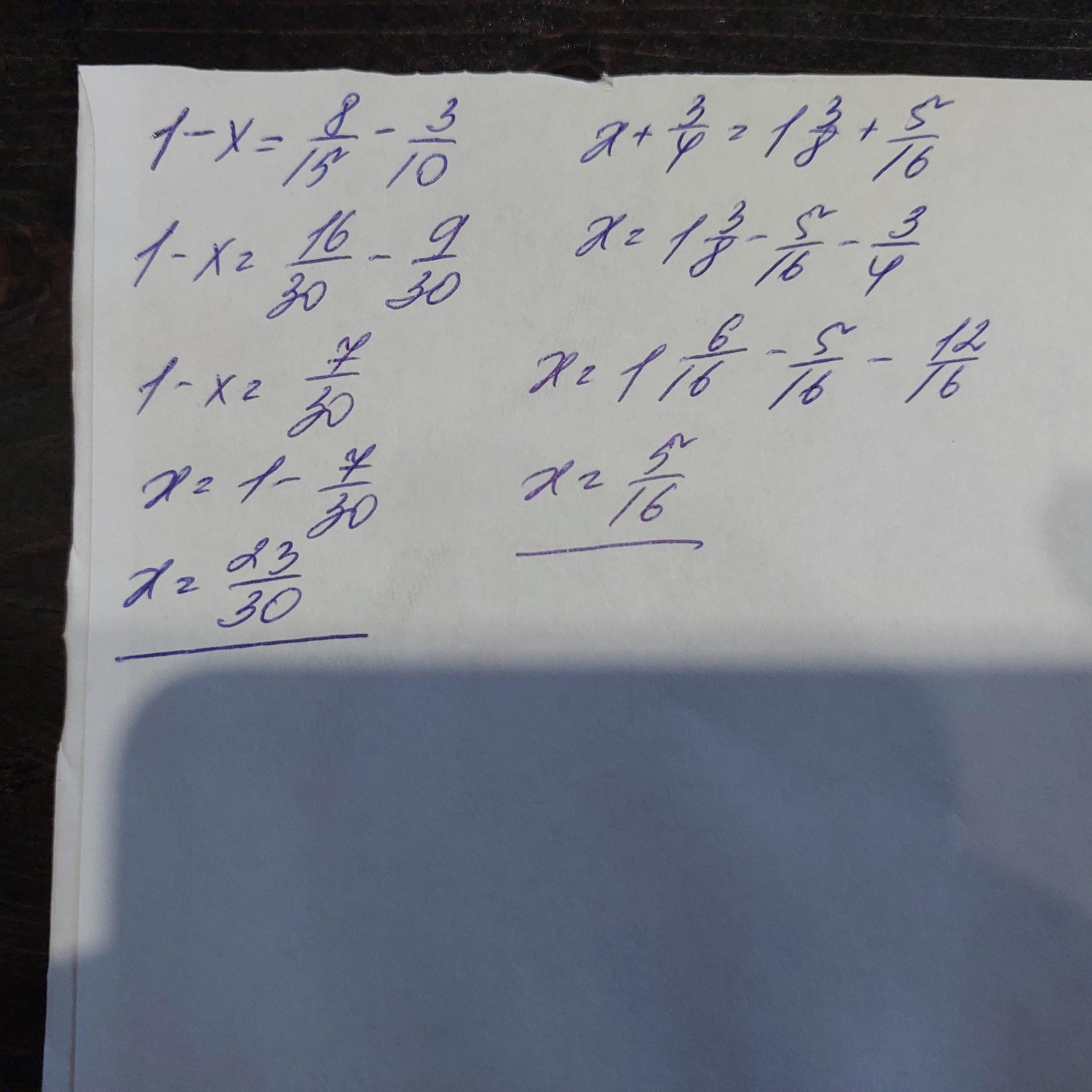 Розв'яжіть рівняння: а) 1-х = 8/15-3/10; Б) х + 3/4= 1 3/8+5/16​