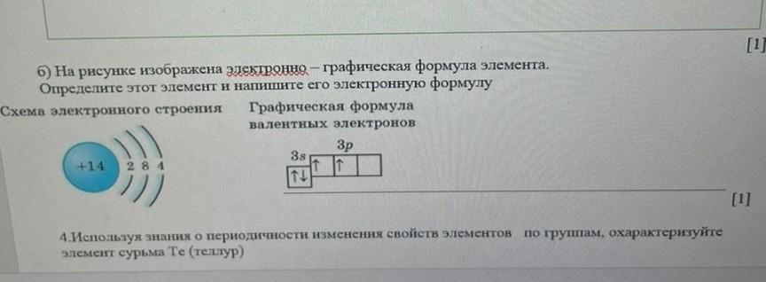 6) На рисунке изображена электронно - графическая формула элемента. Определите этот элемент и напишите его электронную формулу Схема электронного строения Графическая формула валентных электронов +14 284 38 It 3р It [1] [1]