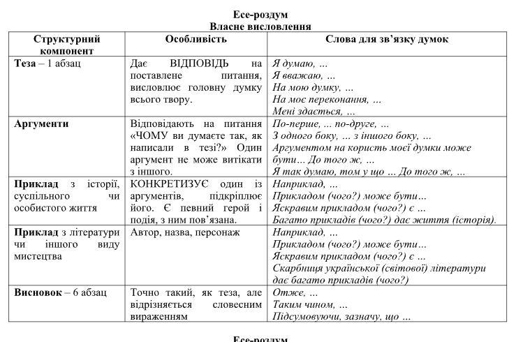 Послуговуючись таблицею, напишіть власне висловлення на одну з тем.