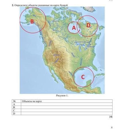 2. Определите объекты указанные на карте буквой CHEYK В с D B Объекты на карте Рисунок-1. A с D. 141