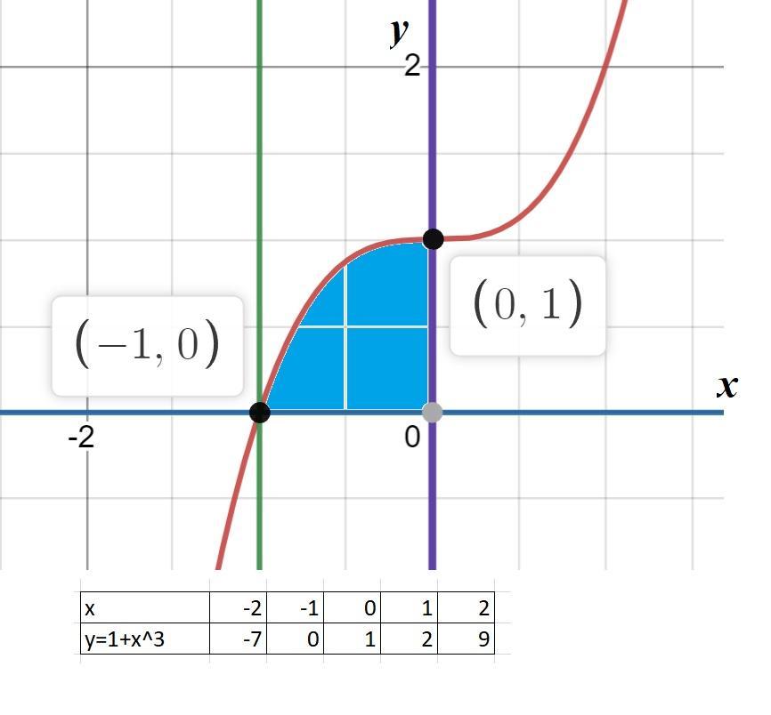 y=1+x^3; y=0; x=-1; x=0 . (См. скриншот)