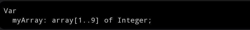 2. Массив из 9 элементов, которые являются целыми числами, можно описать в блоке описания переменных следующим образом: