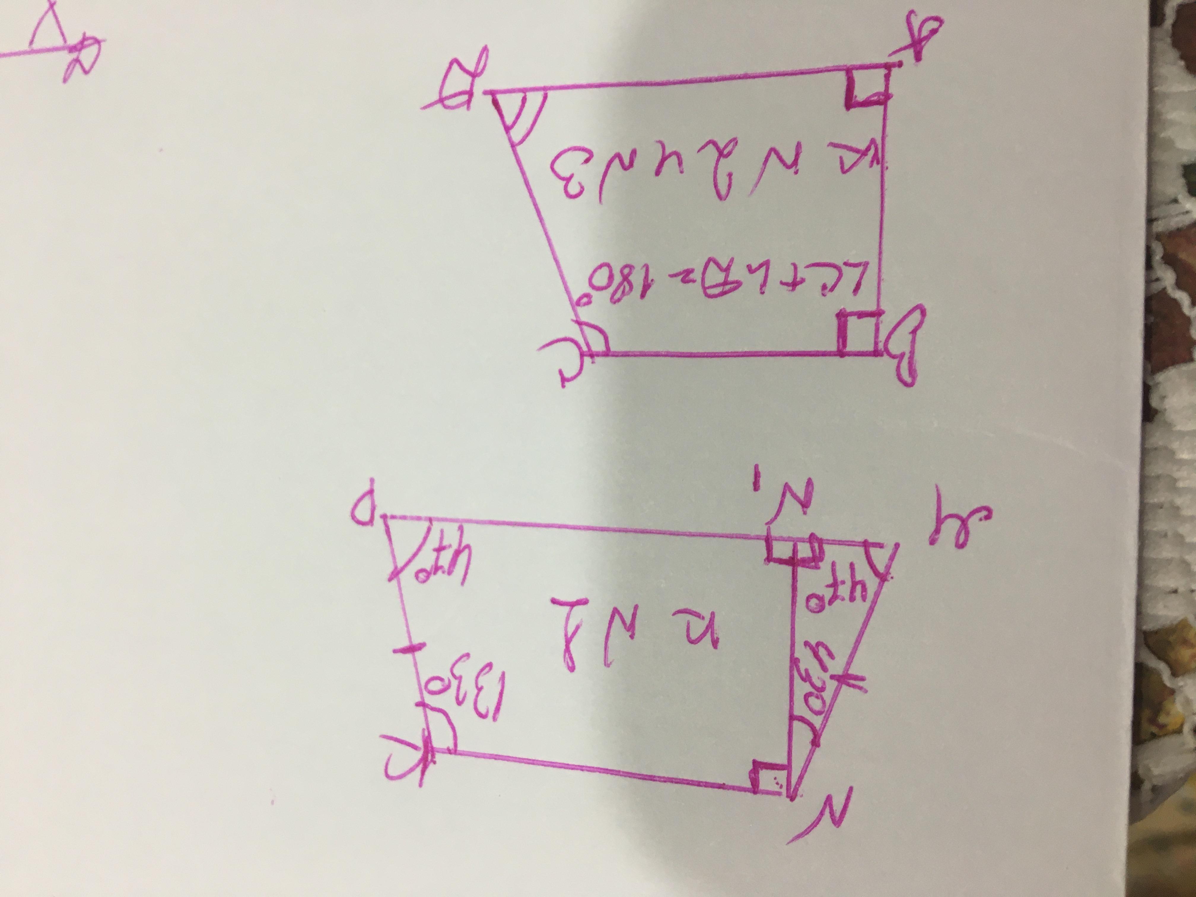Сумма углов прилежащих к бОльшей боковой стороне равны 180*