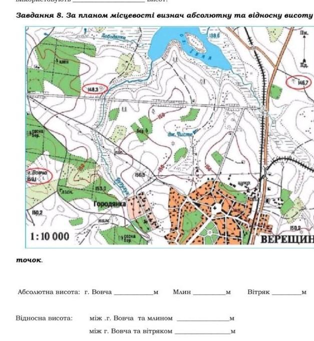 - За планом місцевості визнач абсолютну та відносну висоту.