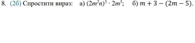 а)(2m2n)3*2m3=4m4m1=4mn6.               б)m+3-(2m-5)=4m2