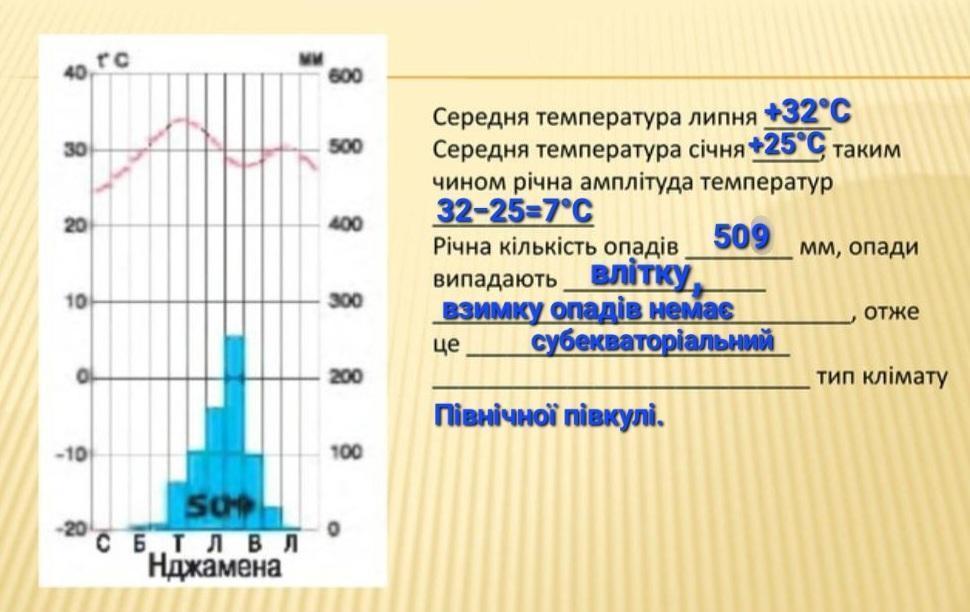 Середня температура січня +20°С, таким чином річна амплітуда температур 20-10 = 10 °С.