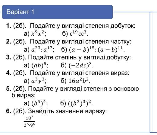 а) Подайте в виде степени с основанием выражение: (b^5)^4 = b^(5*4) = b^20.