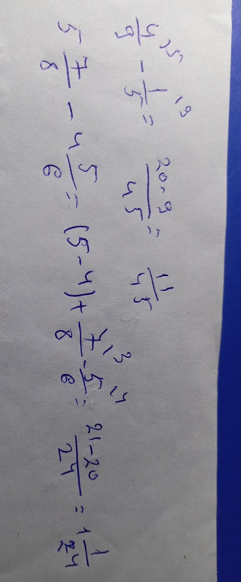 1) 4/9 - 1/5 = 20/45 - 9/45 = 11/45