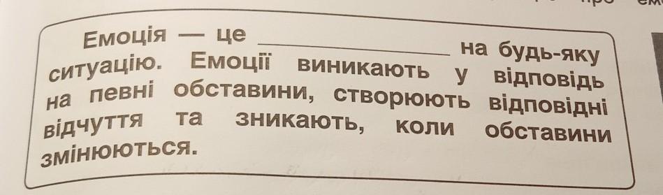 Відповідь:Емоція — це реагування га будь яку ситуацію