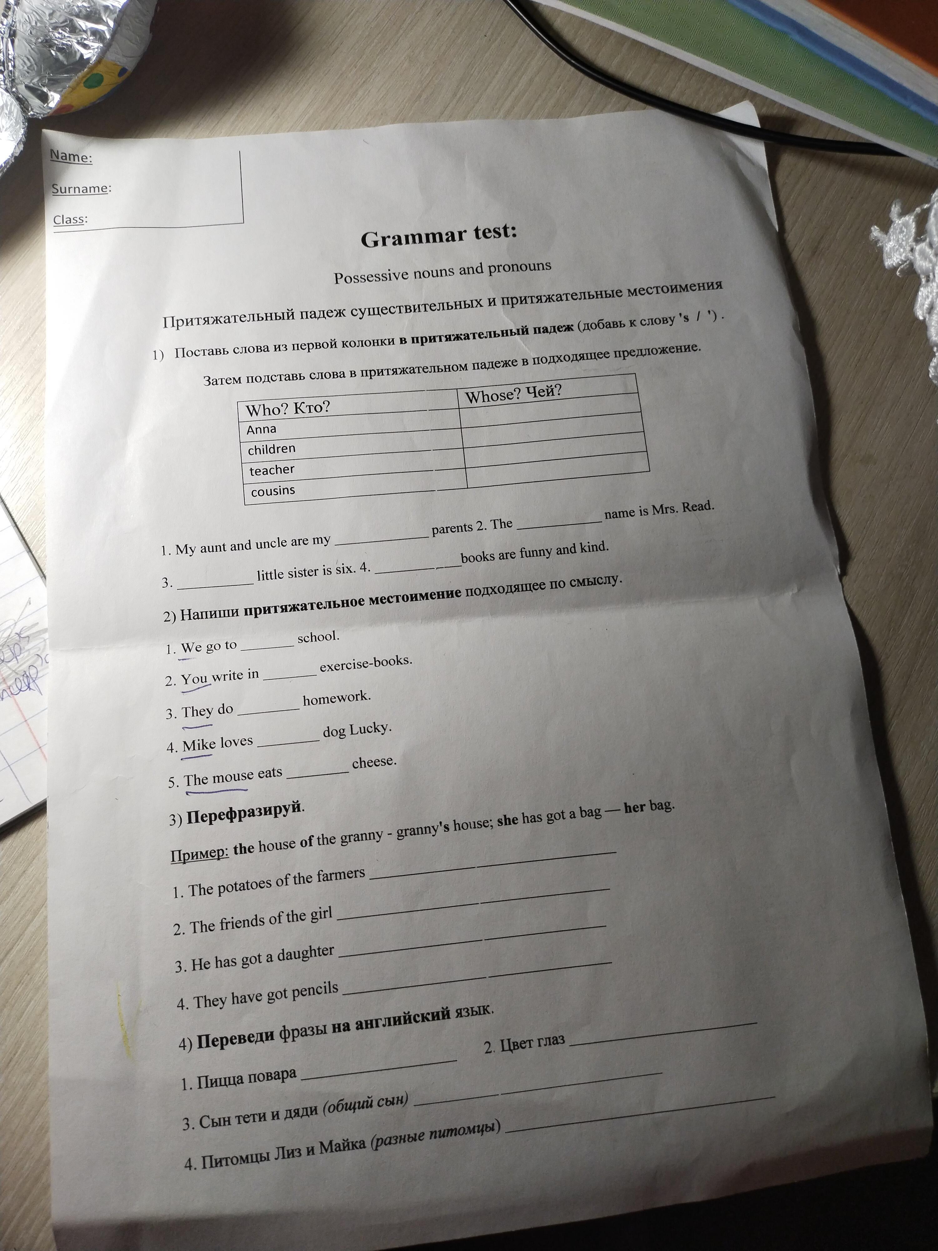 2 задание где притяжательные местоимения- 1. Our, 2. Your, 3. Their, 4. His, 5. It’s