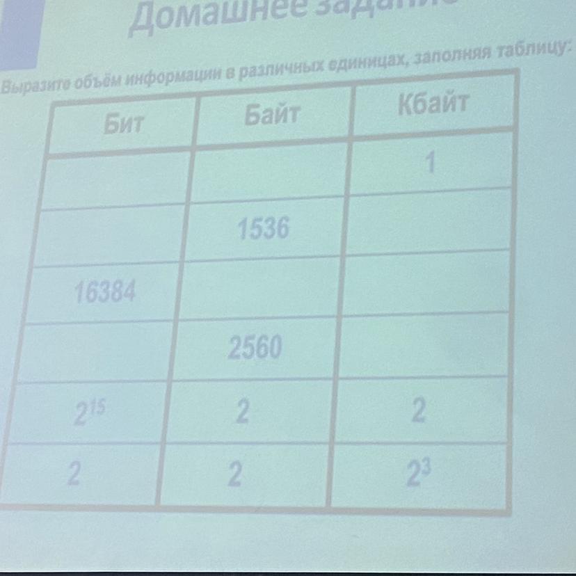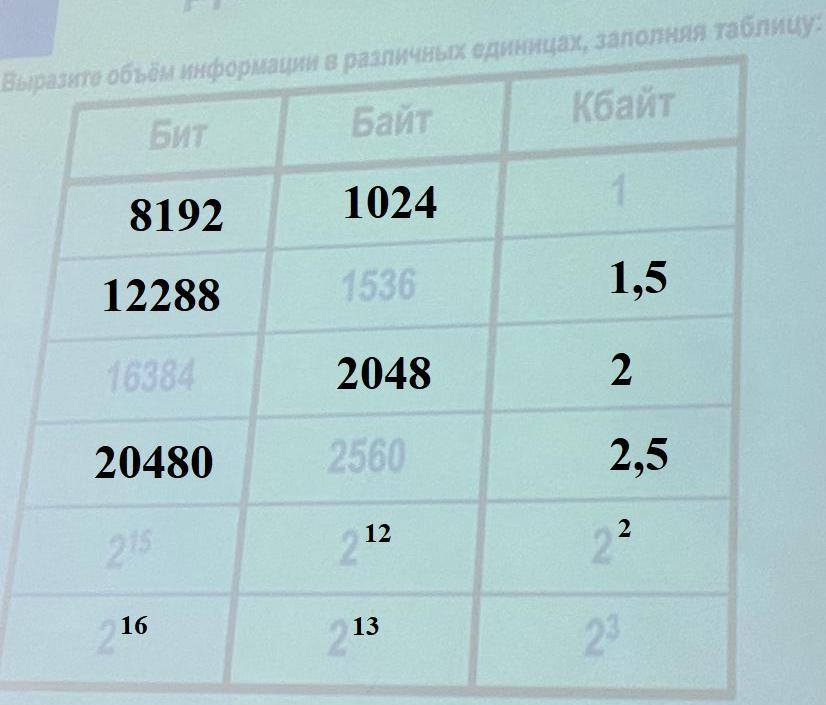 2^3 Кбайт=2^3×2^10=2^(3+10)=2^13 байт